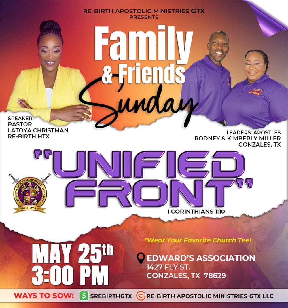 We have Pastor Latoya Christman from Re-Birth Apostolic Ministries Htx who will bring a powerful word for not just our church but Family & Friends.